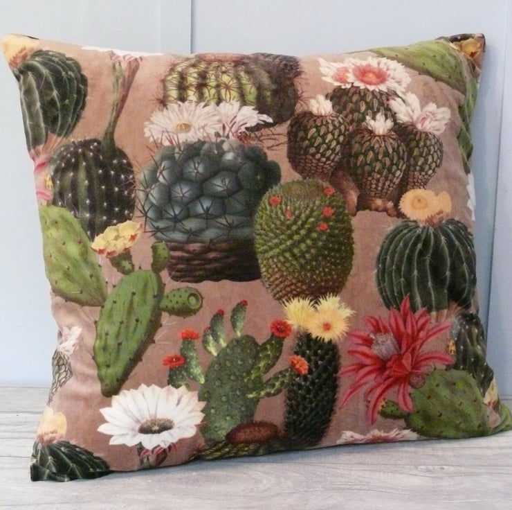 Velvet Cactus on both sides with hidden zip.
