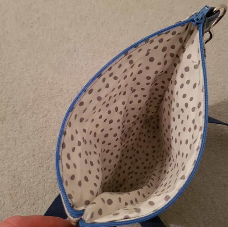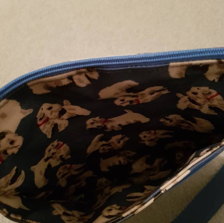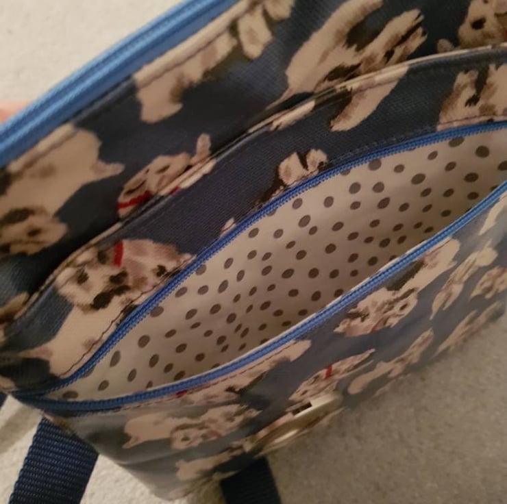 This is a handmade dog walking bag made in Cath Kidston Billie fabric