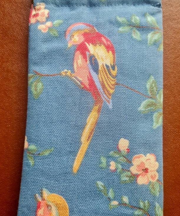 This is a glasses or sunglasses case made in Cath Kidston Bird fabric.