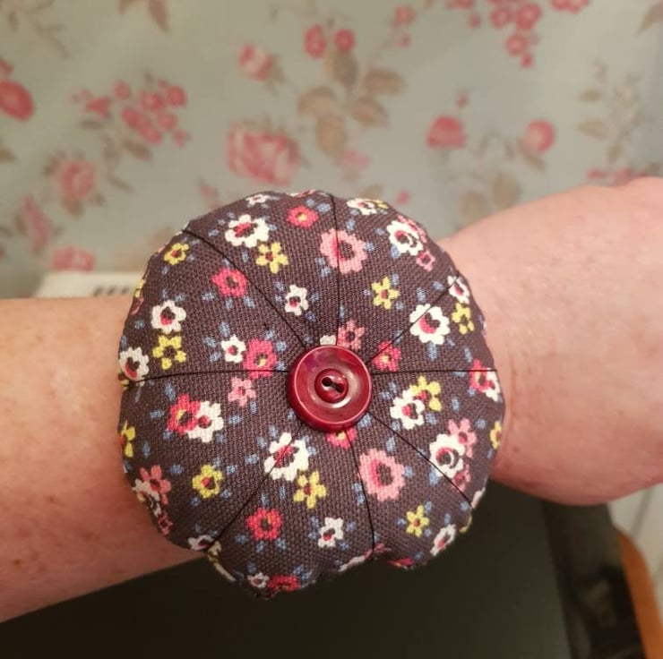 This is a wrist pin cushion made in Cath Kidston small flowers fabric