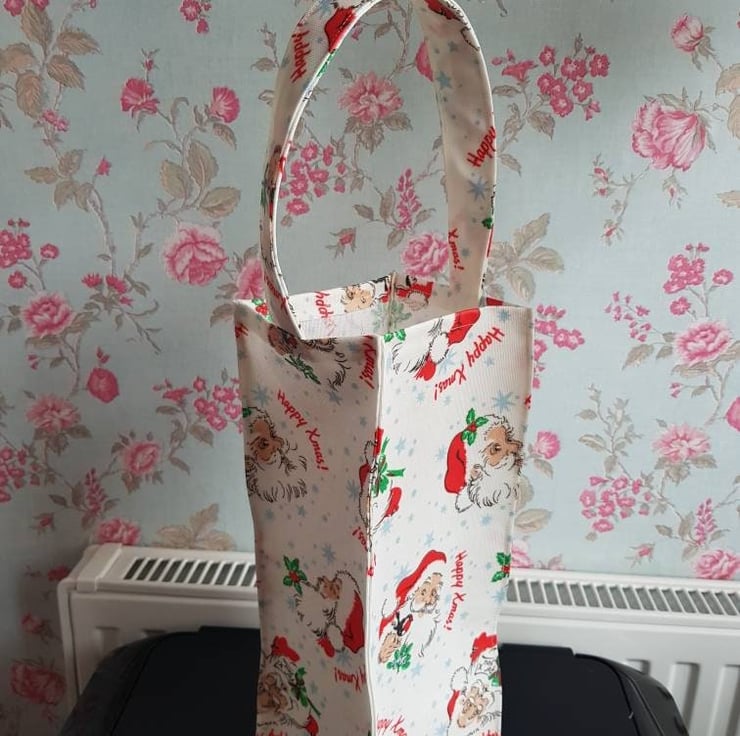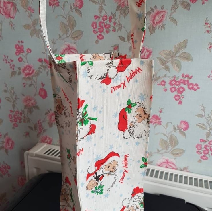 These are wine tote bags bottle bags made in Cath Kidston Christmas oilcloth