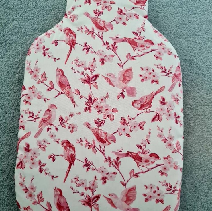 Hand made hot water bottle cover (comes with 2 litre hot water bottle) made in Cath Kidston Birds fabric.