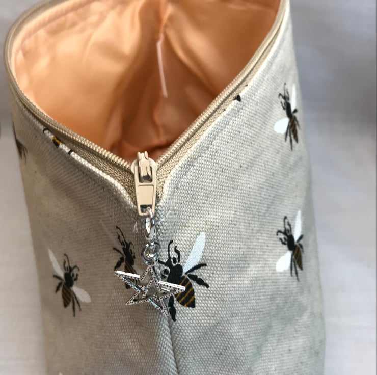 The lining inside the bag is waterproof and the zip comes with a star charm which can be taken off.