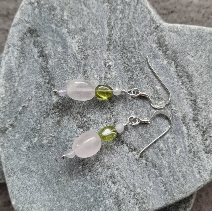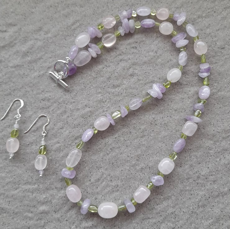 Rose Quartz Peridot Amethyst Necklace and Earring Set