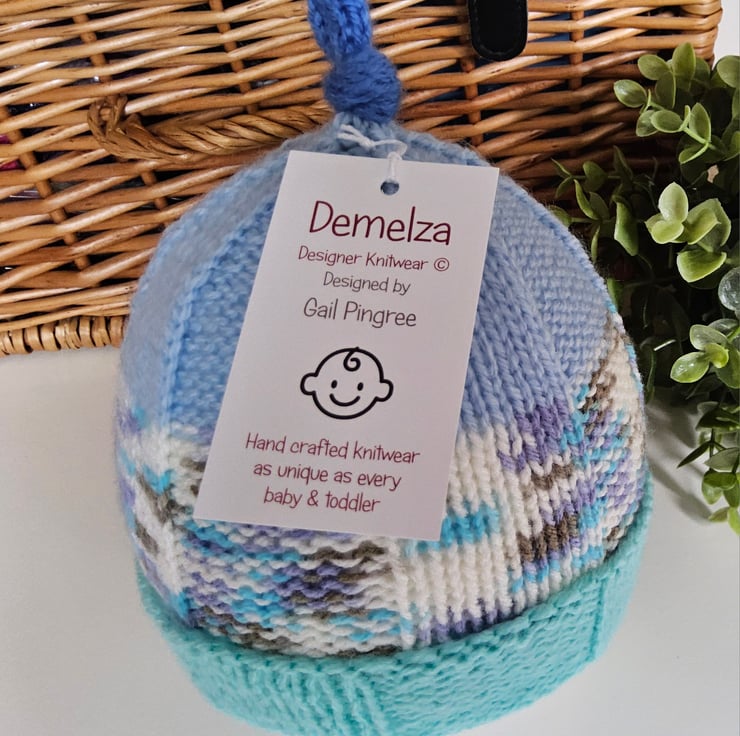 Baby knitwear is designed and hand crafted by Demelza Designs in Cornwall meeting UK baby safety standards, Only branded premuim acylic, acrylic/natural fibre blends or pure natural fibre yarns are used in baby knitwear which conforms to BS984/76 standards.