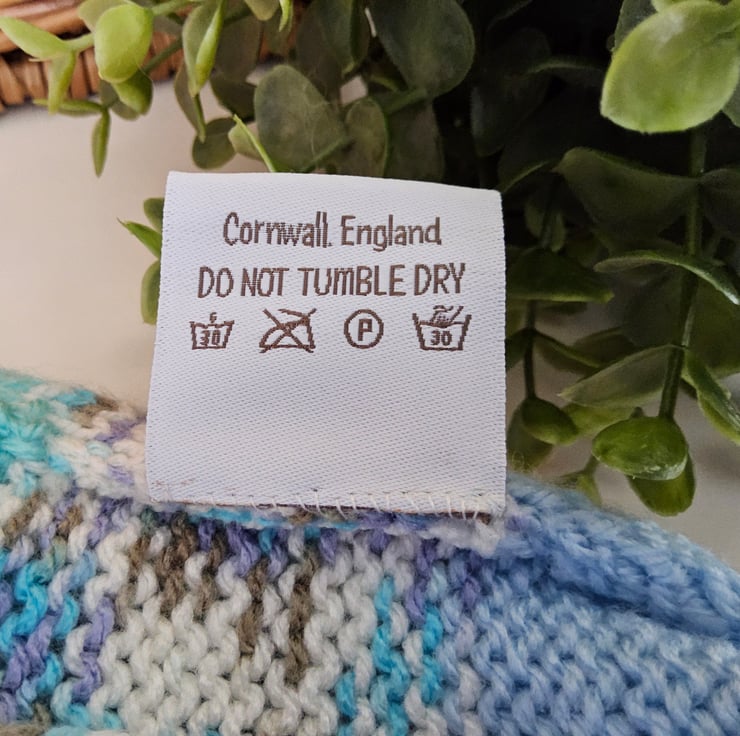 The yarns used are premium machine washable acrylic. The Demelza Designs luxury soft damask garment label is hand sewn to the back seam with the care instructions woven within it. A Demelza Designs garment swing tag is attached for a totally professional touch.