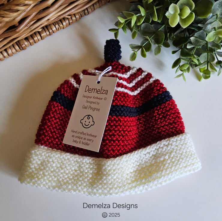 On the inside back seam the branded soft damask garment label has the care instructions woven within it for lasting reference. The hat has the branded Demelza Designs garment sewing tag attached providing a professional finish if gifting.
