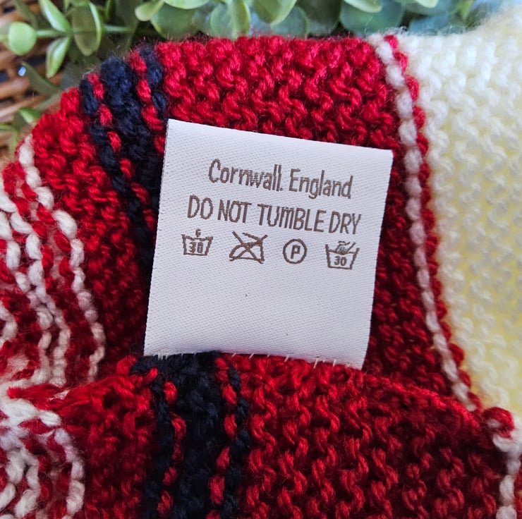Baby knitwear is designed and hand crafted by Demelza Designs in Cornwall meeting UK baby safety standards, Only branded premuim acylic, acrylic/natural fibre blends or pure natural fibre yarns are used in baby knitwear which conforms to BS984/76 standards.