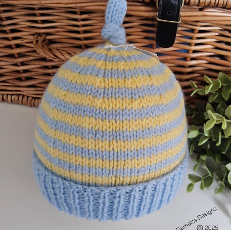 A very practical baby hat designed and lovingly hand crafted using branded British machine washable acrylic yarns.