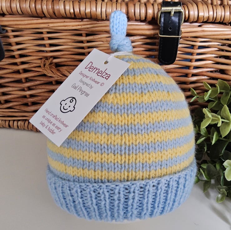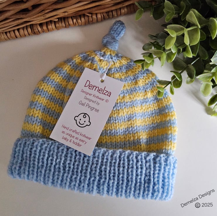 The hat will come with the branded Demelza Designs garment sewing tag attached as proof of it's designer origins if gifting. All new mothers enjoy receiving a gift totally unique for their baby.