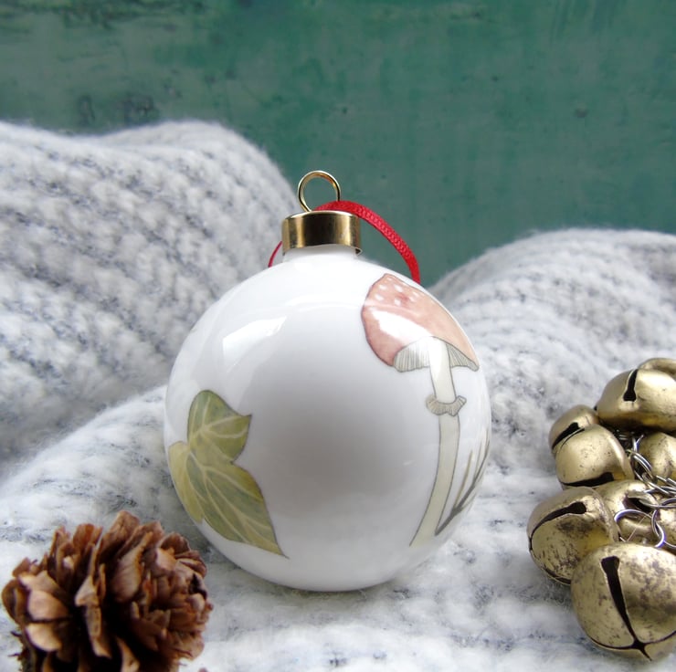 Painted from my photographs of a friendly robin I encountered on a winter walk. My original painting is scanned in and printed as a ceramic transfer, hand cut and applied to a fine bone china Christmas tree bauble. Each bauble will have a different combination of imagery meaning each one is unique, creating a special heirloom decoration that can be treasured each year.