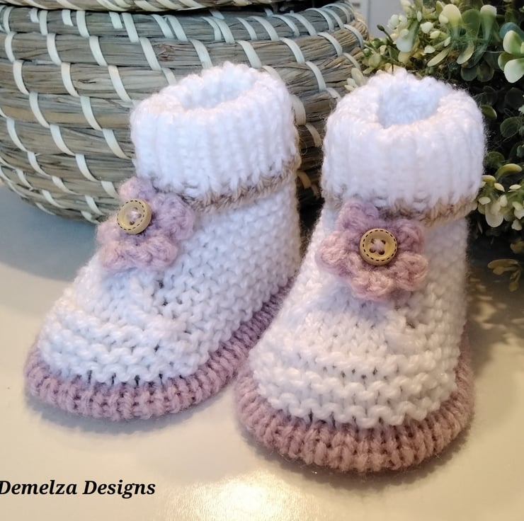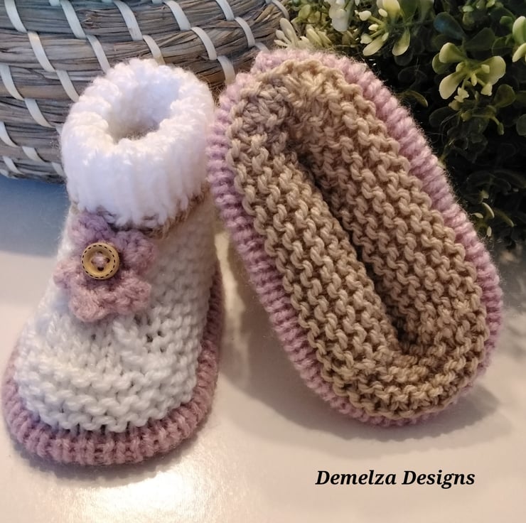 Baby Girl's Hand Knitted Booties 0-3 months size