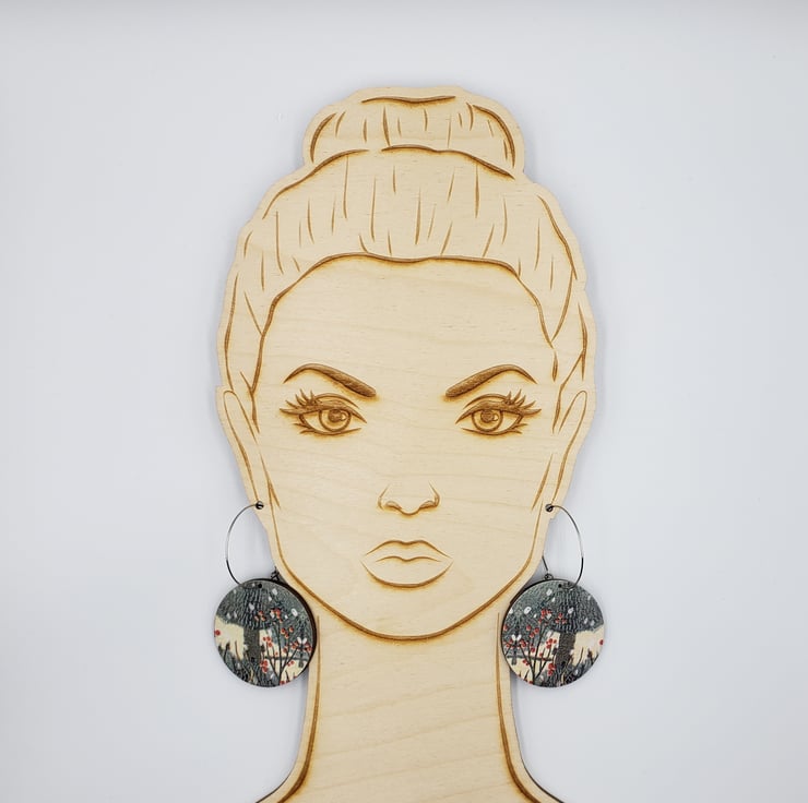 30mm Stainless steel hoops (optional sterling silver hoops available at checkout).