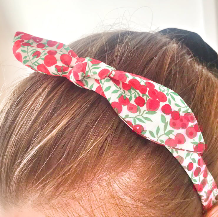 Pretty Alice band in a festive Liberty fabric with a hand knotted bow embellishment. A perfect birthday or Christmas gift and a stylish accessory to any outfit.