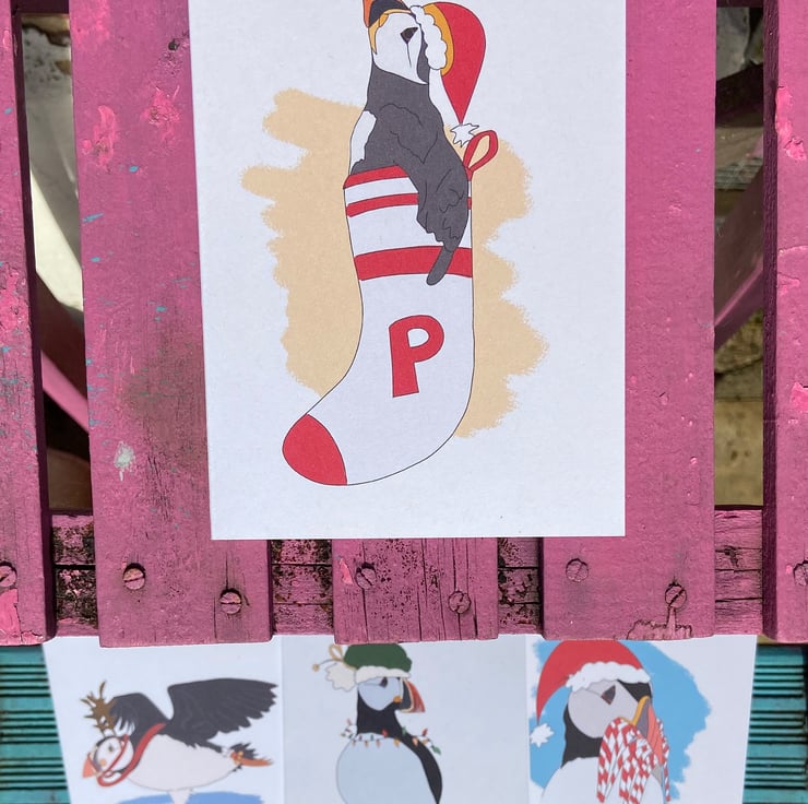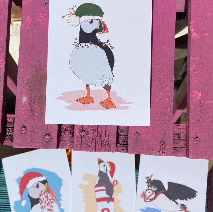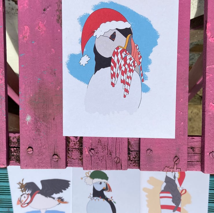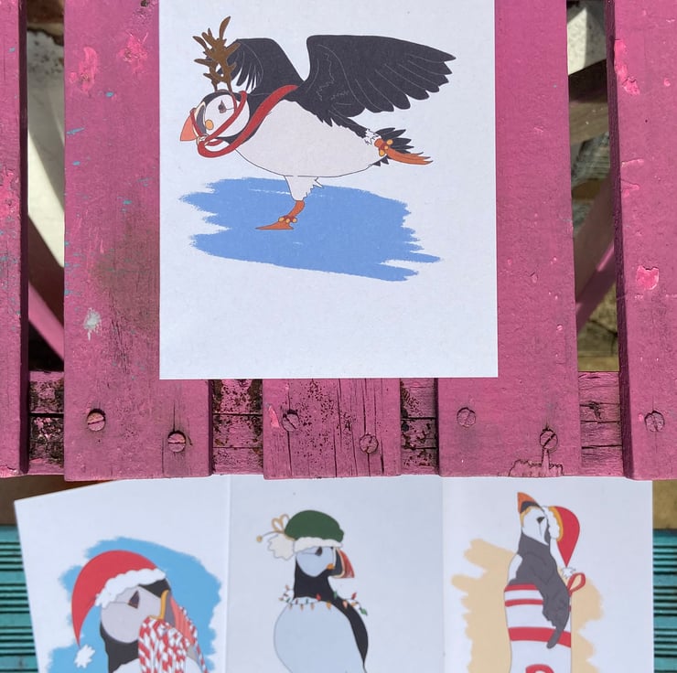We love puffins! These little Christmas guys are inspired by some previous unreleased sketches we'd done over the last couple of months for other work. They were perfect for some Christmas hi-jinx.