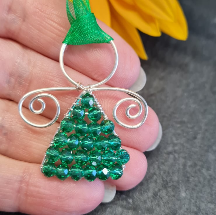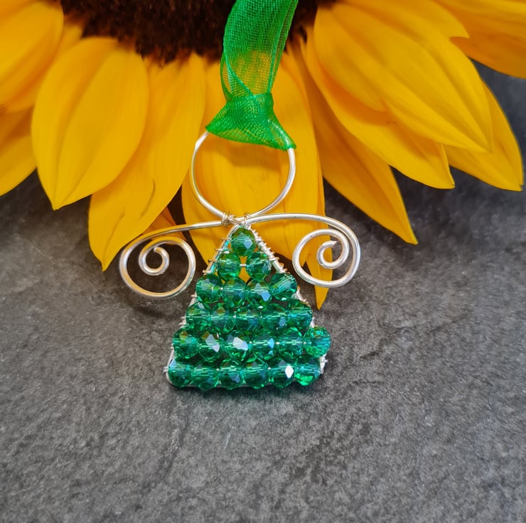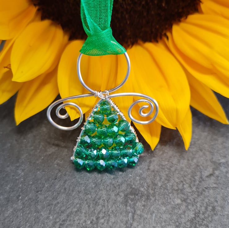 Wire wrapped mini angel with Green colour crystals with an ab coating that ensures that they catch the light beautifully.