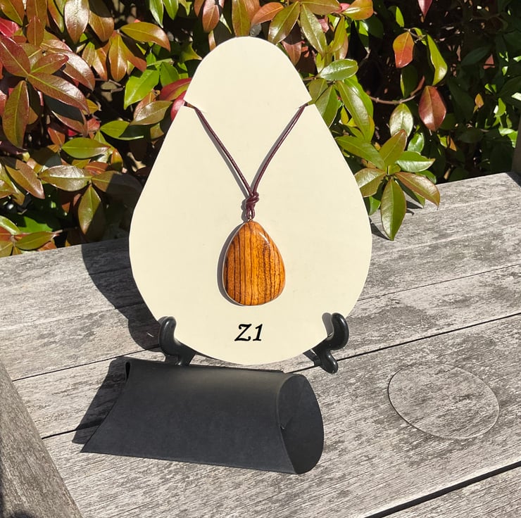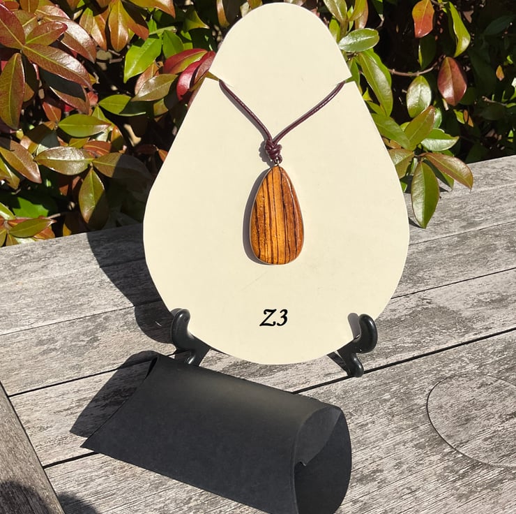 A selection of elegant pendants made from the Zebrano hardwood. The wood is charecterised by the natural black stripey grain pattern and inherent natural colour making these pendants a very striking and unusual gift.