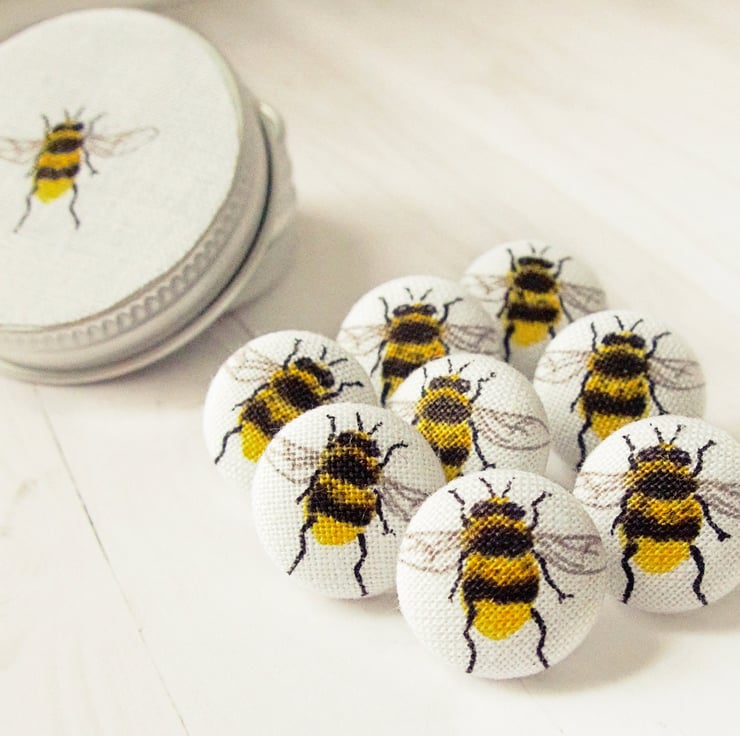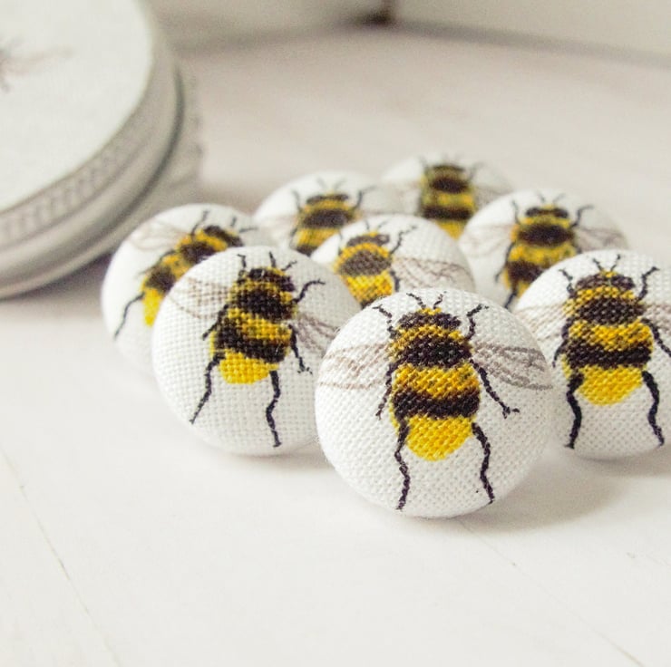 These bumblebee honeybee fabric buttons are perfect for displaying floral works of art or photos on your office noticeboard or fridge. Select magnet (neodymium) or drawing pins from menu.