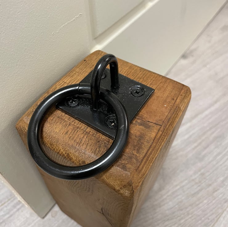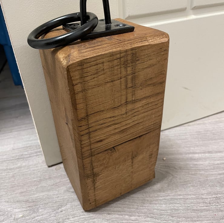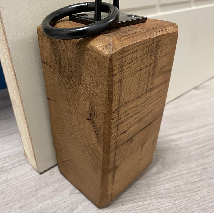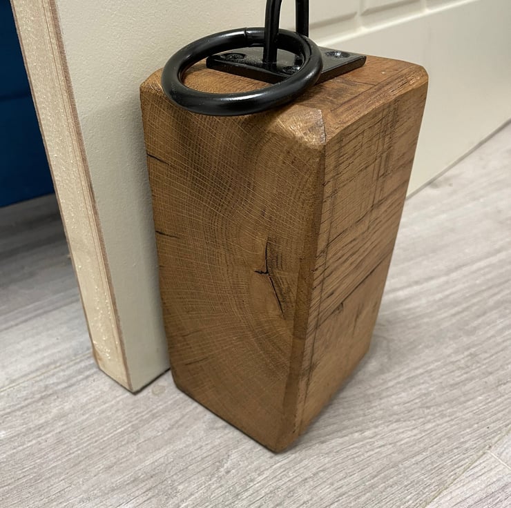 Our oak door block is made from 100% solid oak and is finished with a stunning metal loop hook giving it a country rustic look. All the sides are rounded to give it nice clean edges. This is prefect in any room!