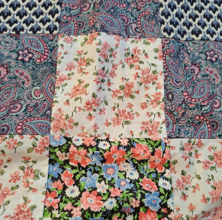 Finish piecing this vintage quilt yourself or take it apart and use the many pieces of accompanying fabric for something completely different. The ultimate in thrift - taking up someone's abandoned project and making it your own. The epitome of completeness.