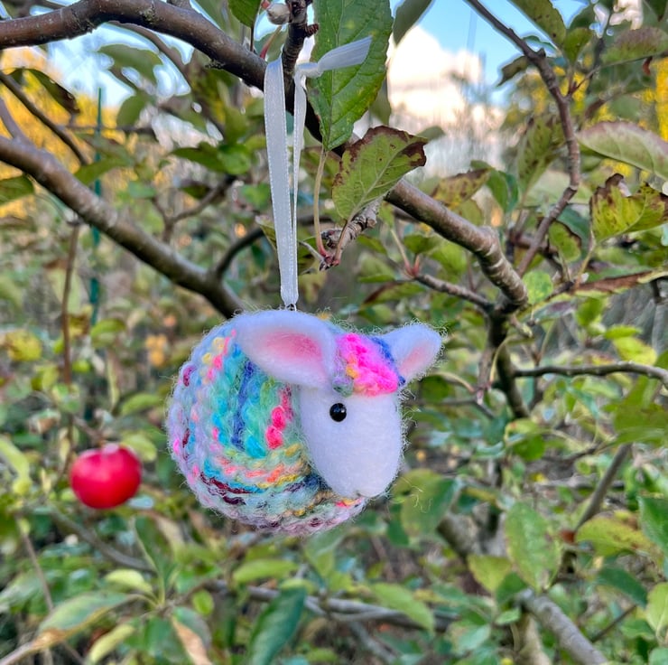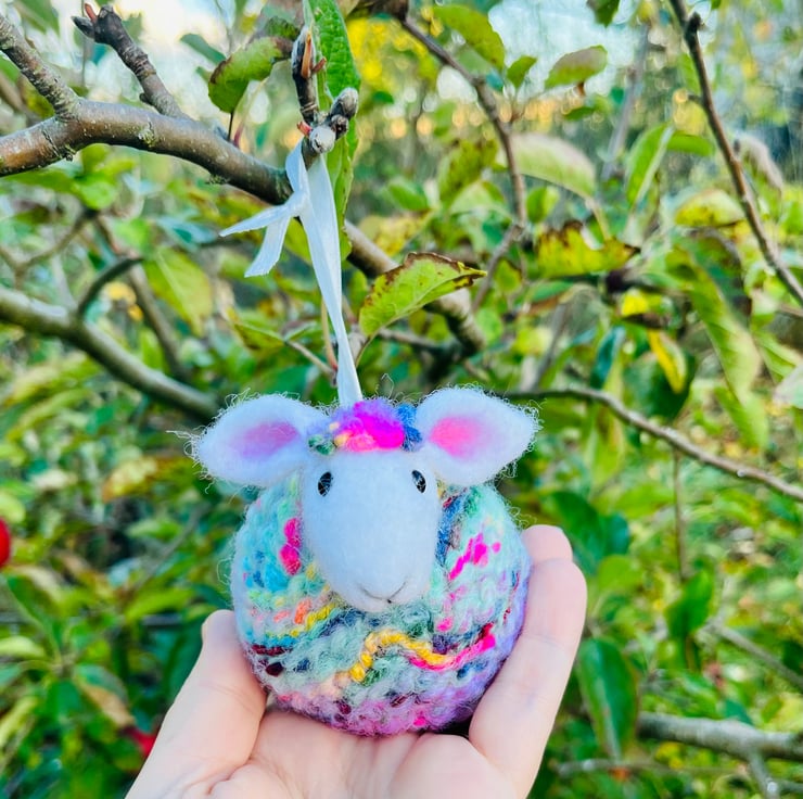 Needle Felted Rainbow Sheep bauble / hanging decoration