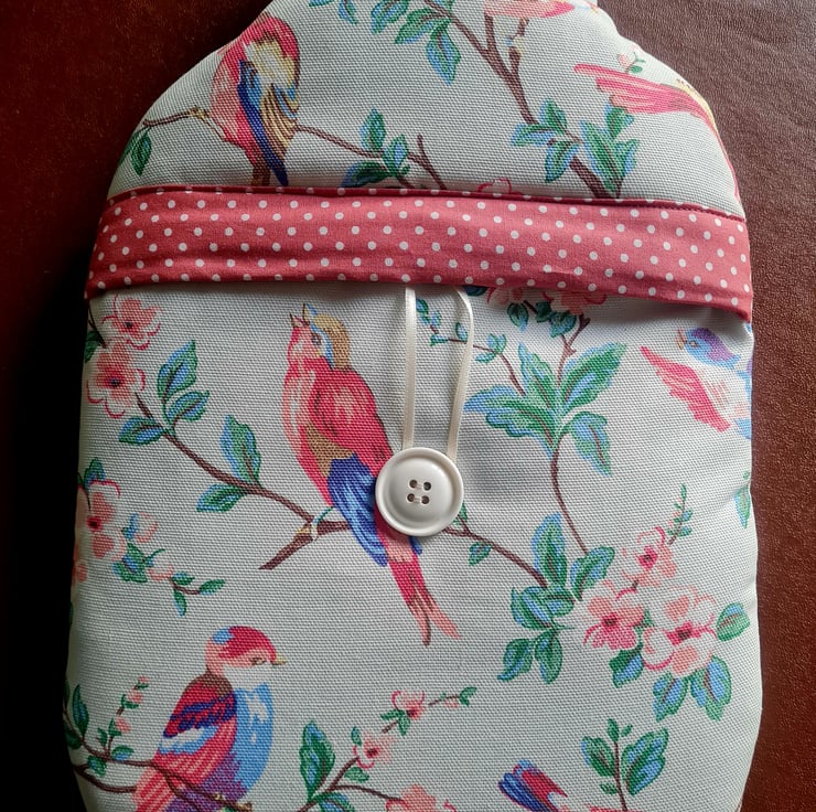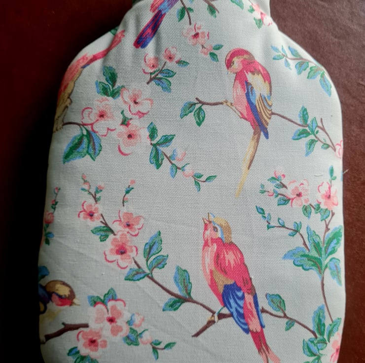 Hand made hot water bottle cover (with a 2 litre hot water bottle) made in Cath Kidston Birds fabric.