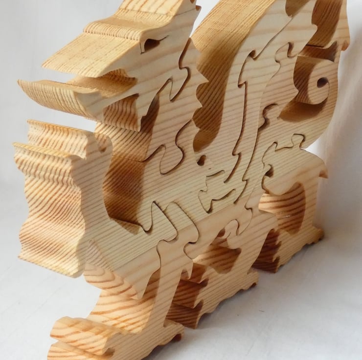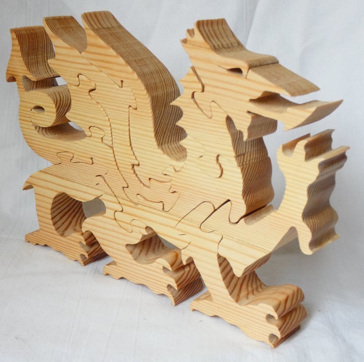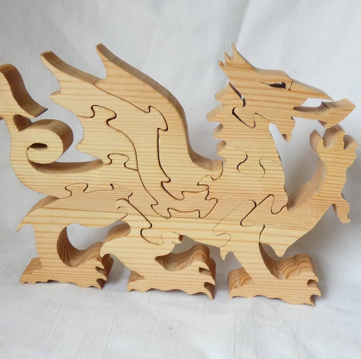 This unique wooden Welsh Dragon Jigsaw Puzzle, has been upcycled from reclaimed wood. The dragon would make a lovely table centerpiece or mantlepiece ornament. This would make a perfect gift for a number of occasions such as a housewarming, birthday or Christmas Gift.