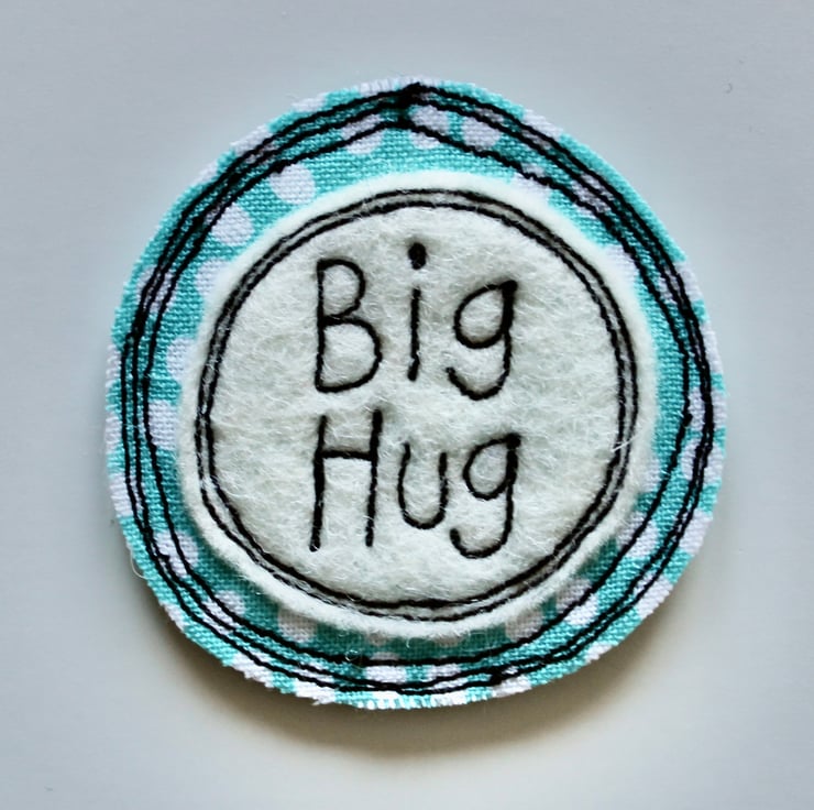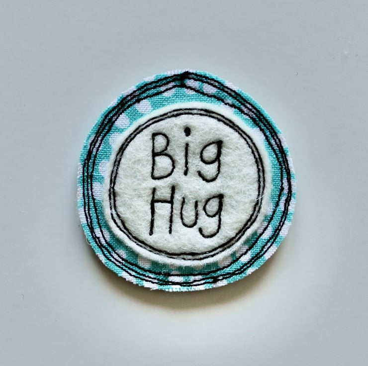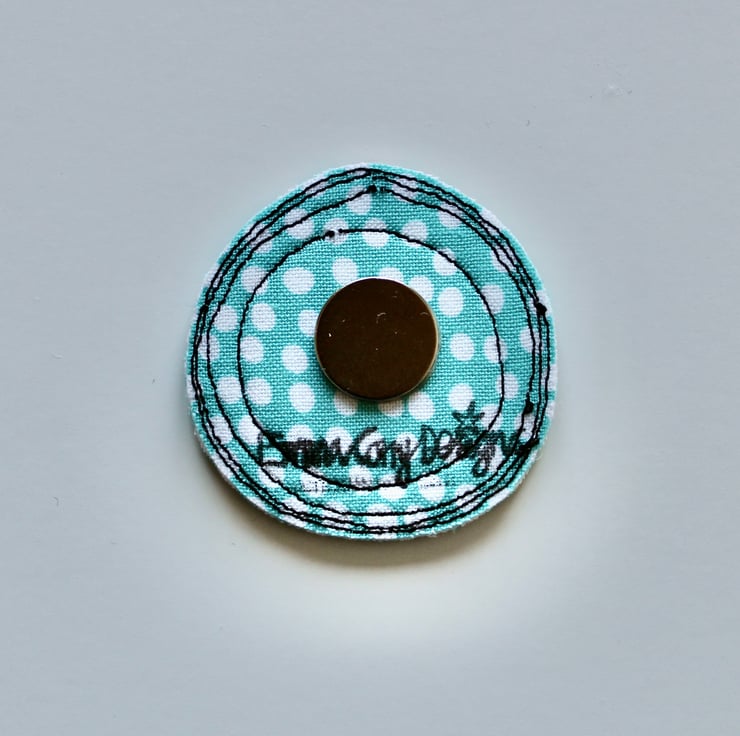 Each magnet is created using multiple layers of cloth, sewn using freehand machine embroidery and then cut out by hand. The magnet on the back is attached with hot glue.