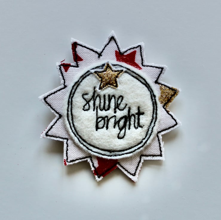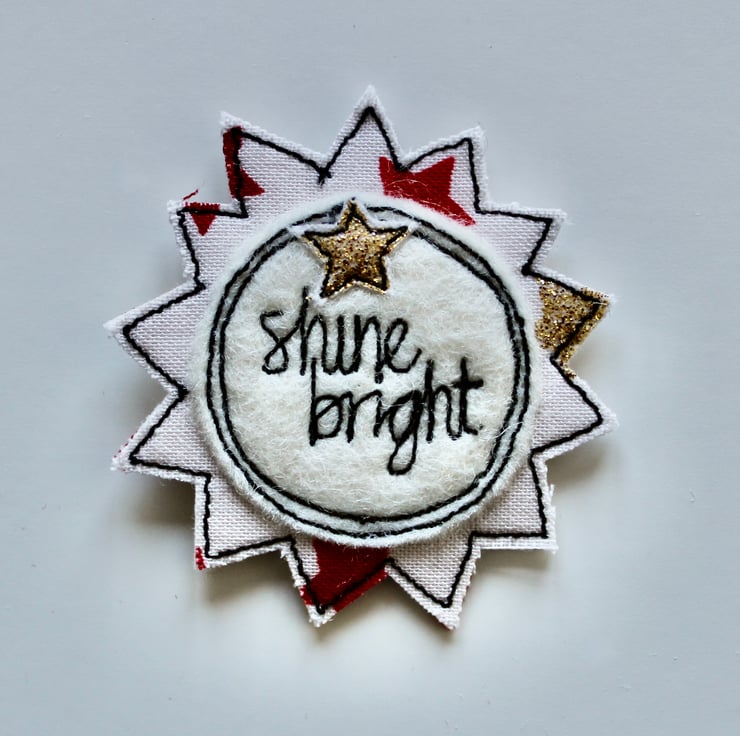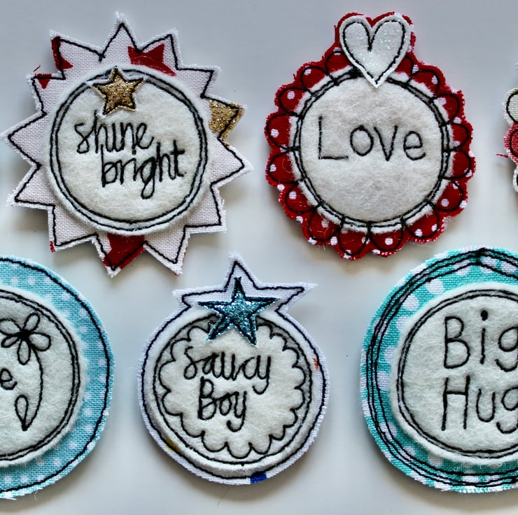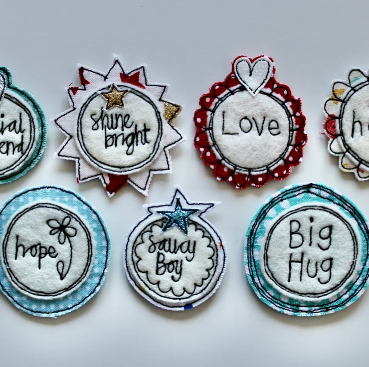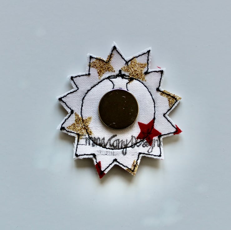 Each magnet is created using multiple layers of cloth, sewn using freehand machine embroidery and then cut out by hand. The magnet on the back is attached with hot glue.