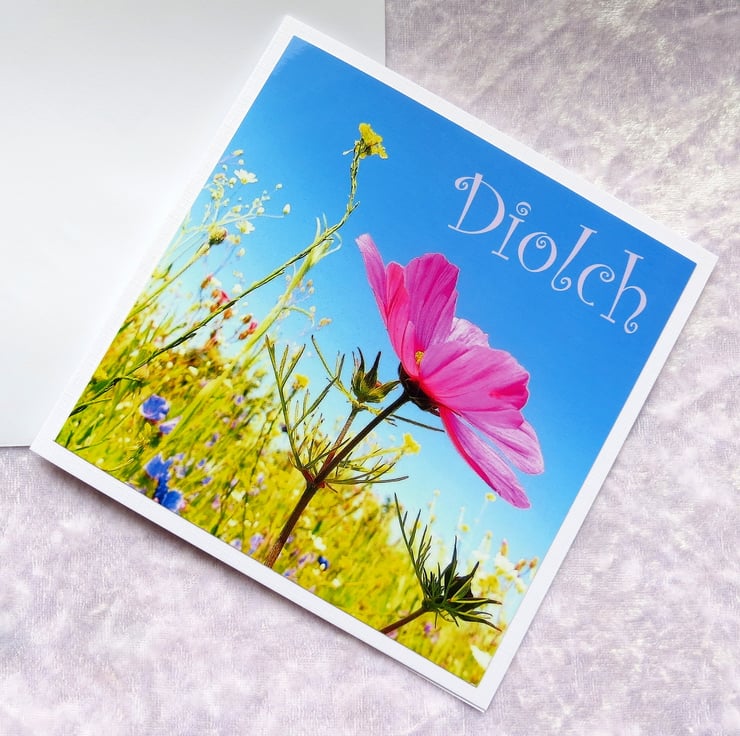 This welsh greetings card measures 15cm x 15cm.