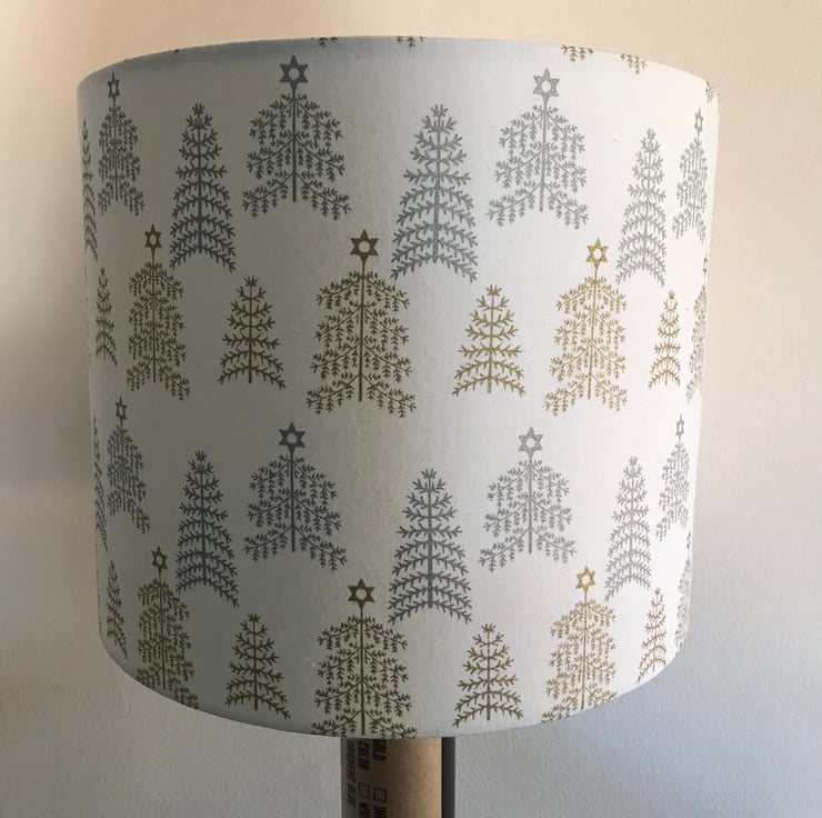 Handmade Christmas Lampshade White with Gold & Silver Christmas Trees