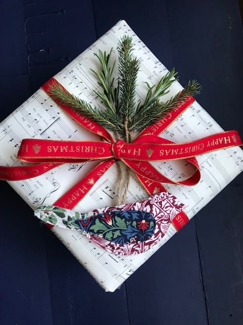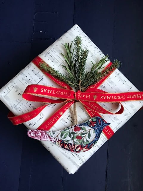 I love finding ways of repurposing leftover snippets of fabric, which would otherwise probably be thrown away. These birds are a perfect example of using scraps of material to create decorative new pieces, and these Christmas versions which would look beautiful decorating a tree or adorning a special gift.