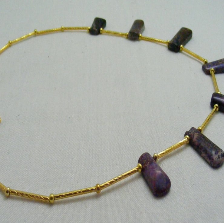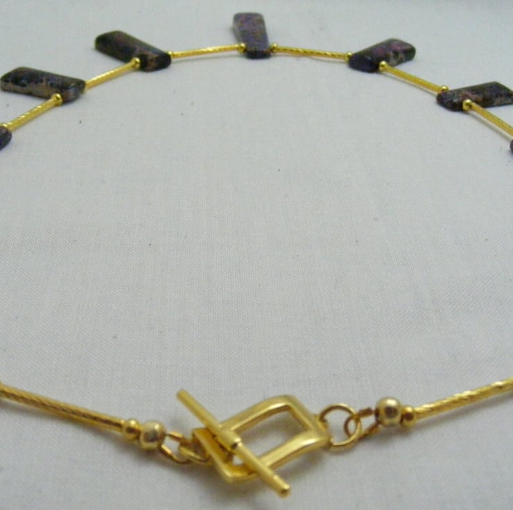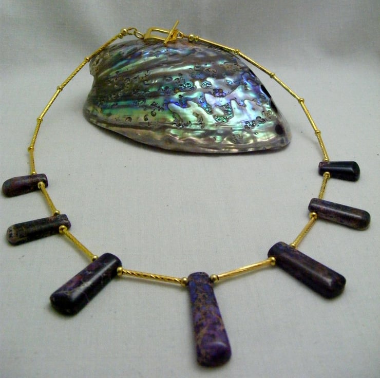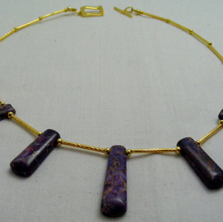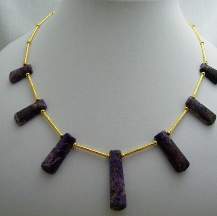 Necklace is one of a kind and handmade with, jasper graduated sediment bars, 2mm gold plated tube spacers, 3mm gold plated spacers, gold plated findings and toggle clasp.
