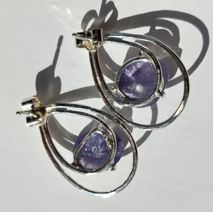 Tanzanite Earrings Recycled Silver Jewellery Gift Teardrop Rose Cut Gemstone