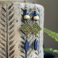 The earrings are finished with Vintaj brass French hook earwires, and they measure approximately 4 cm from the bottom of the earwire and 5 cm in total from top to bottom.