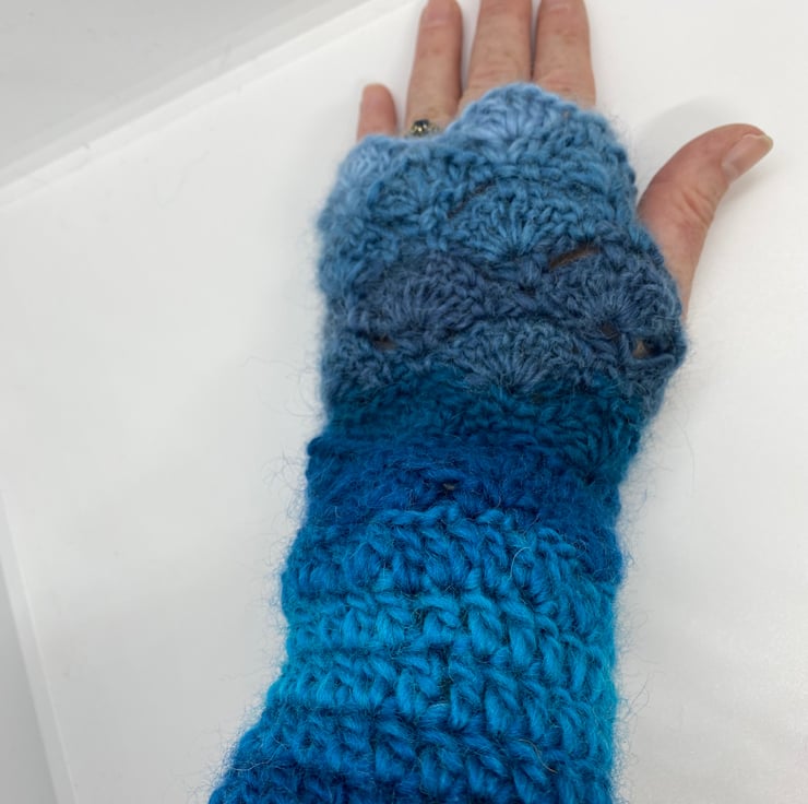 A lovely pair of crochet fingerless gloves.