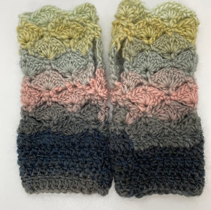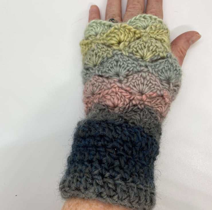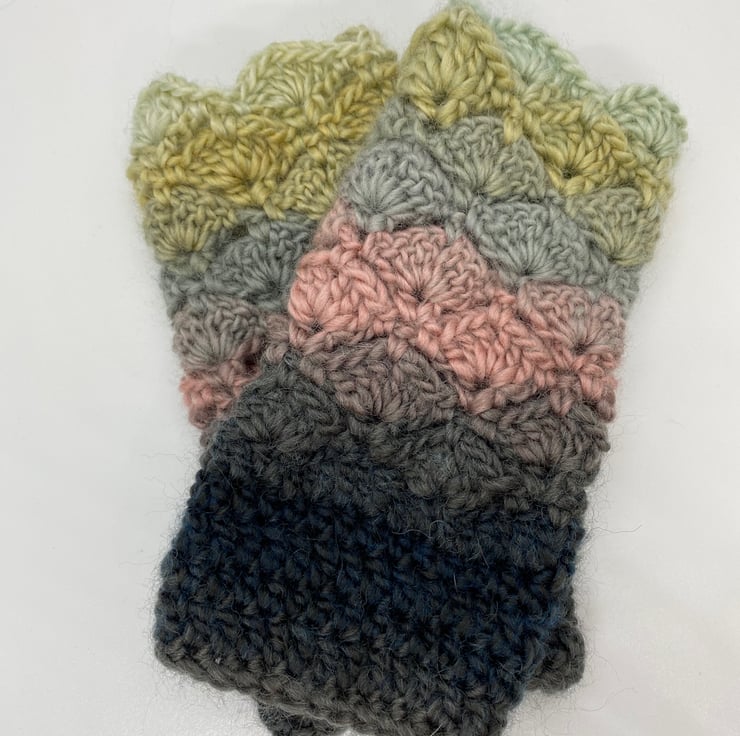 A lovely pair of crochet fingerless gloves.