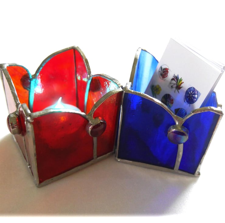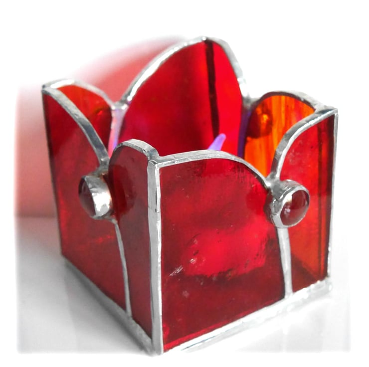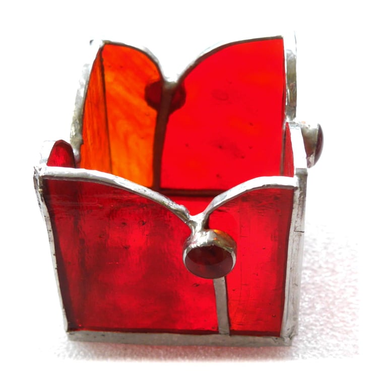 This is a candle holder / box handmade in stained glass using the Tiffany copper foil technique.