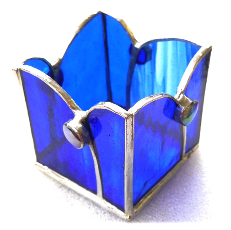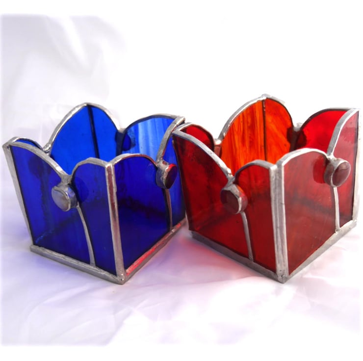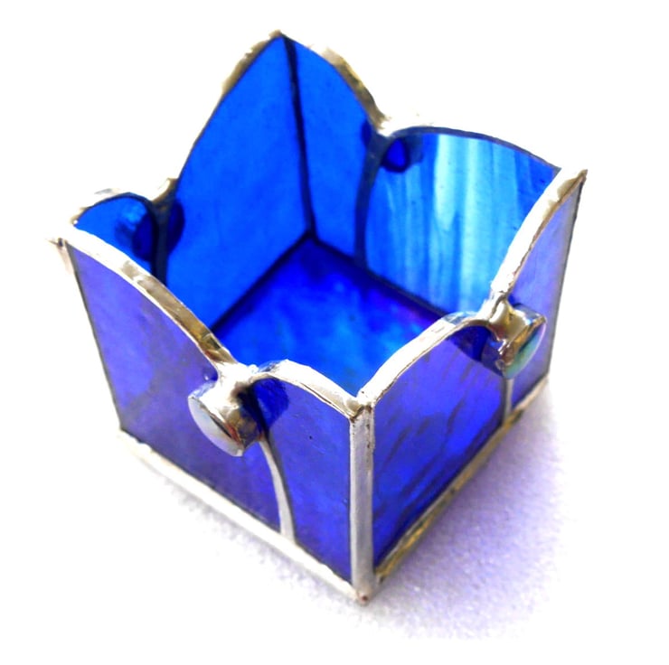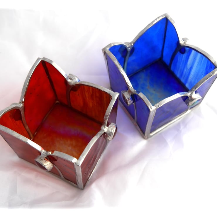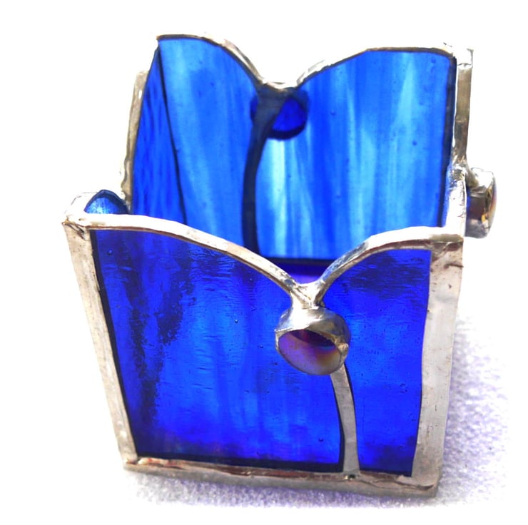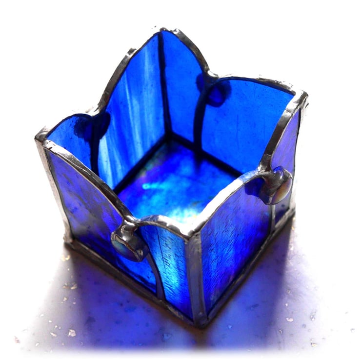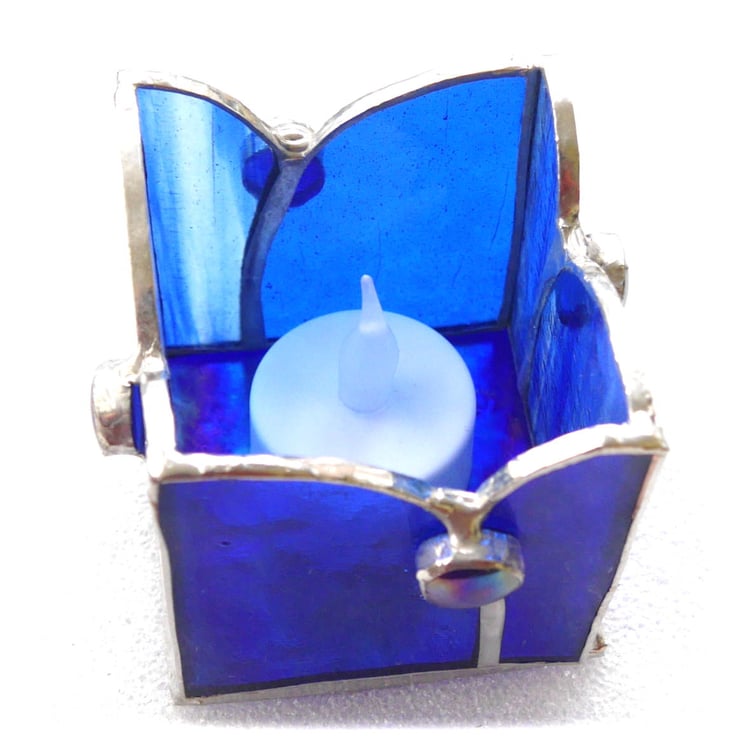 This is a candle holder / box handmade in stained glass using the Tiffany copper foil technique.