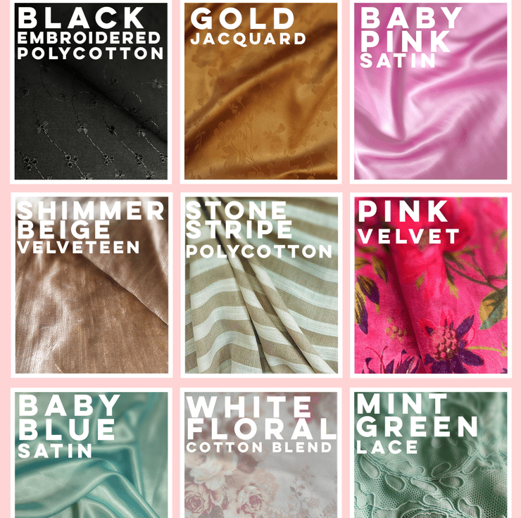 NB! The selection of fabrics varies as they are sourced secondhand, deadstock or off-cuts. Message me to request fabrics that are not listed.