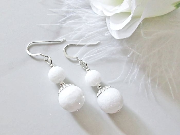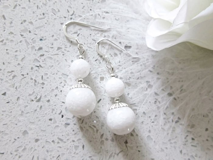 For these striking pure white earrings I chose beautiful 12mm White Agate Semi Precious Gemstones with a matching 8mm one just above.