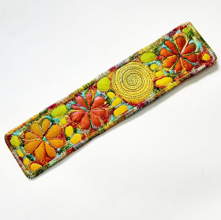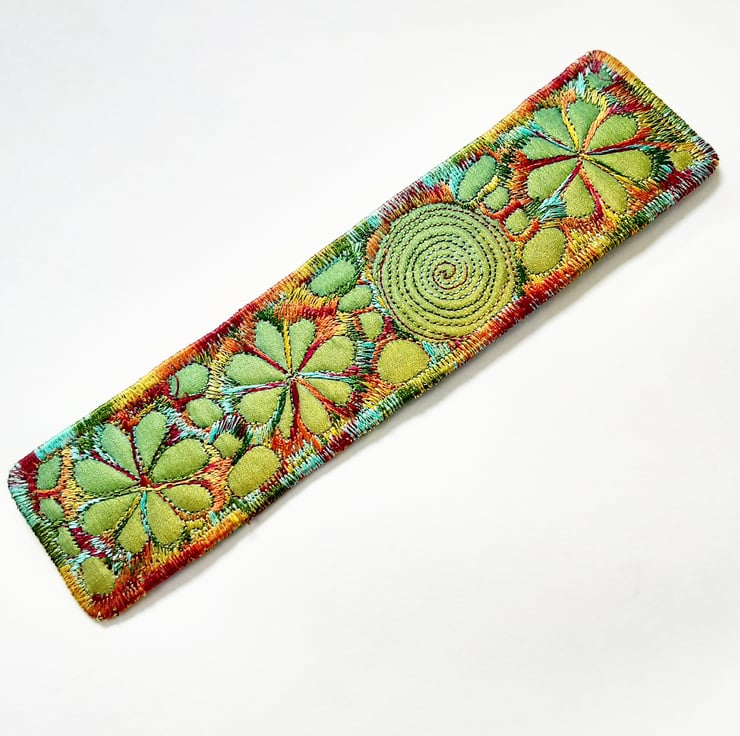 Made from layers of fabric including hand dyed Egyptian cotton and silk fabrics using the free machine embroidery style of sewing