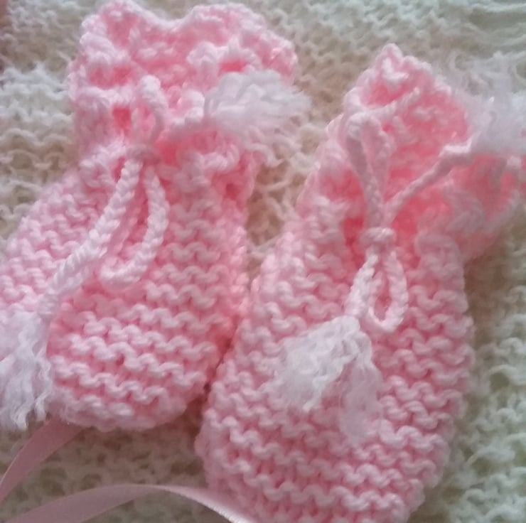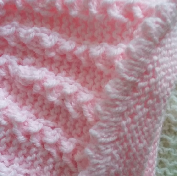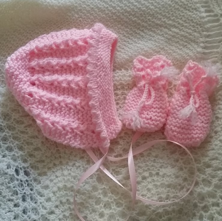 HAND KNITTED 2PIECE SET KNITTED IN DK PINK BABY WOOL BONNET AND MITTENS