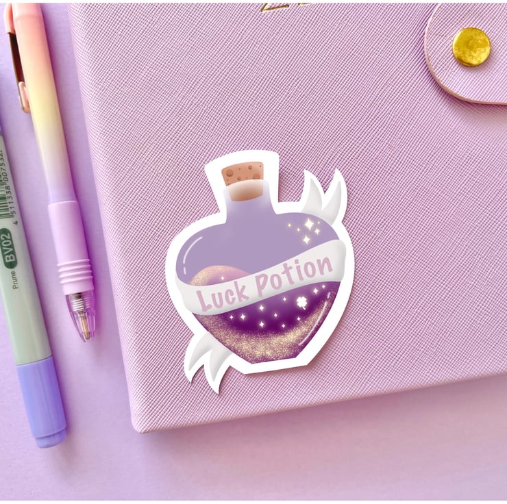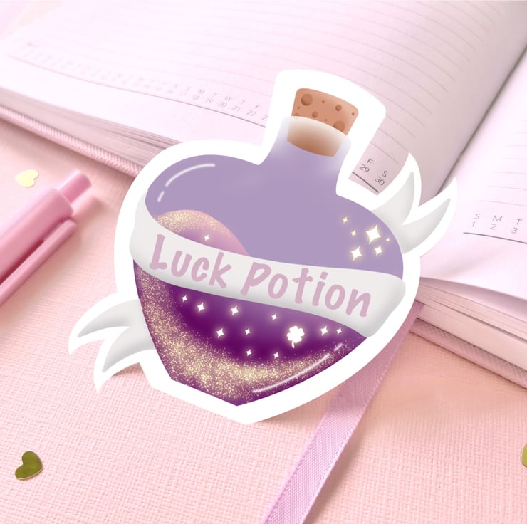 This magical luck potion sticker with its little four leaf clover has has been hand drawn on the iPad using Procreate. The sticker has then been printed on to 100gsm glossy white photo sticker paper and it is splash proof. The sticker can be used on laptops and in your planners or wherever you would like to place it.
