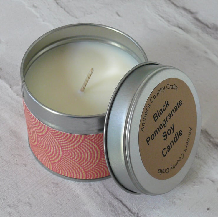 One candle made from soy wax. Fragrance is Black Pomegrante.