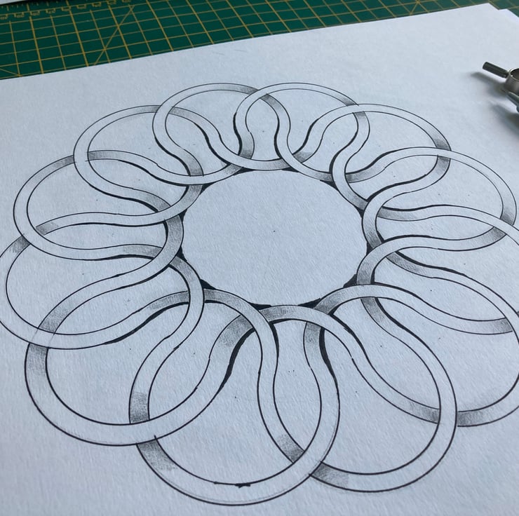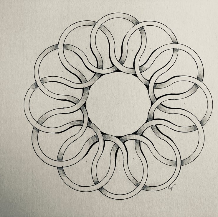 This is a 6 fold symmetry weave. Hand drawn and original. The bringing together of Math and Art. Created from the flower of life in ink and pencil shading. This is a perfect gift for a mathematician or anyone who enjoys maths. the finished piece is on A3 paper and the drawing is 23cm squared.
