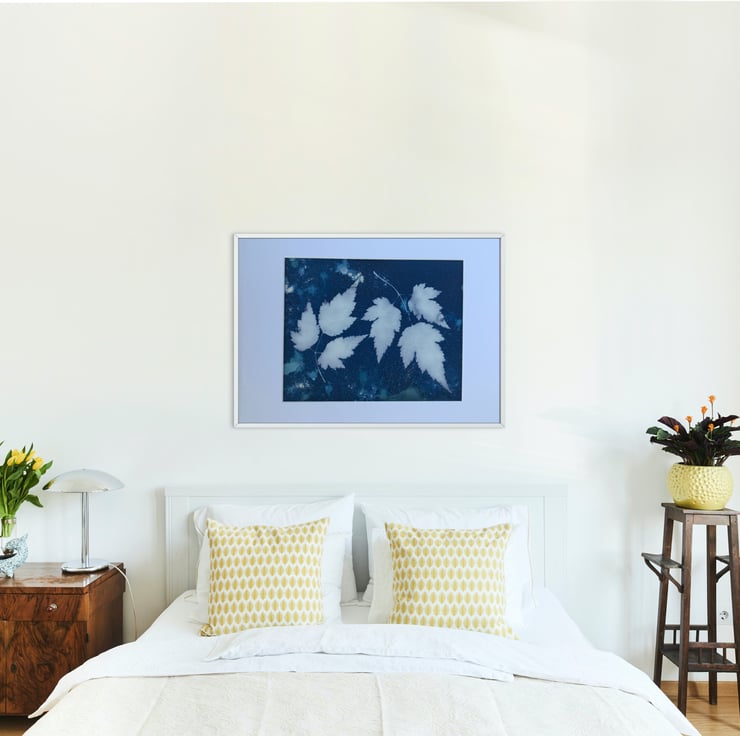 Using the Wet Cyanotype technique here the leaves in the Photogram appear to be hovering, it could hover in your Hall or Home Office very nicely I'm sure!