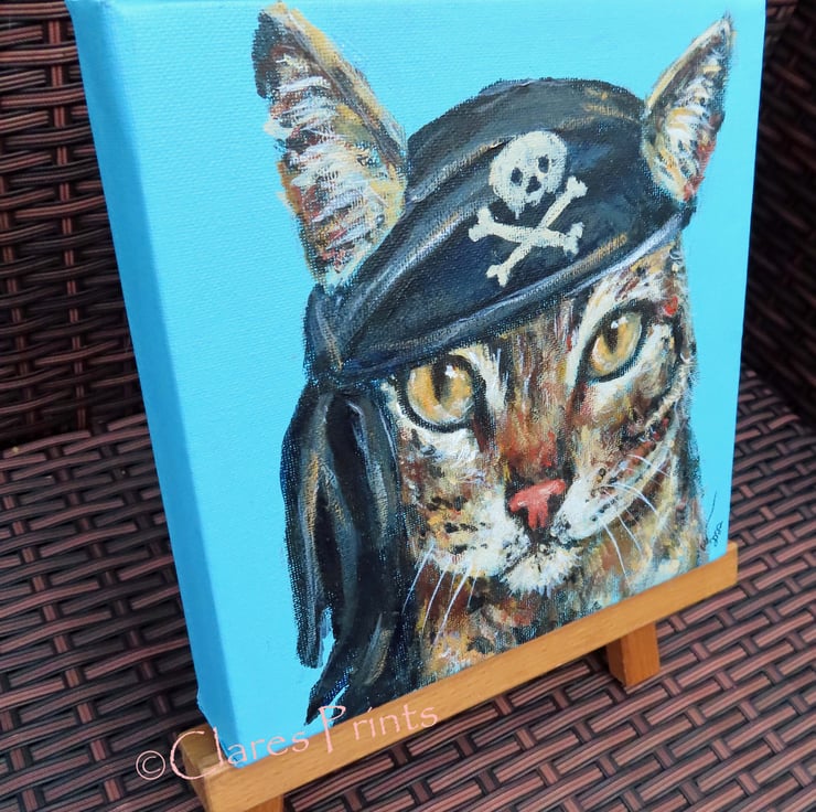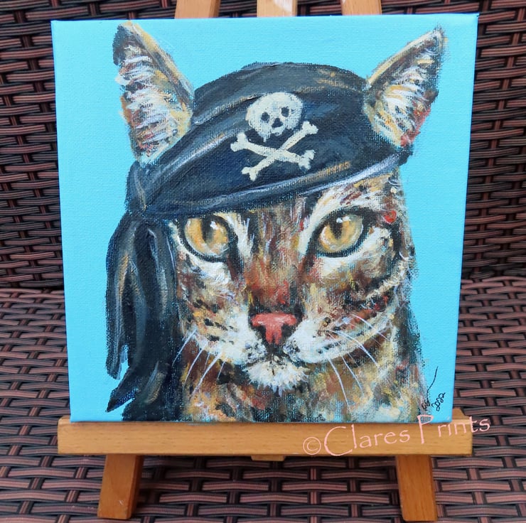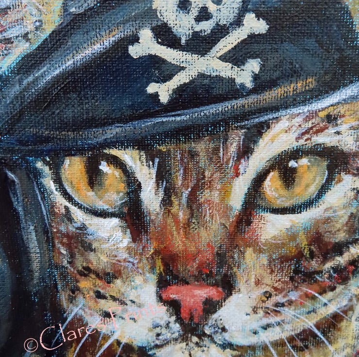 Original acrylic painting on canvas of a Steampunk pirate tabby cat in his akull and crossbones pirate hat!