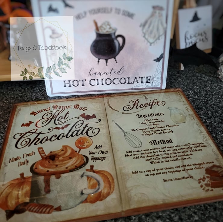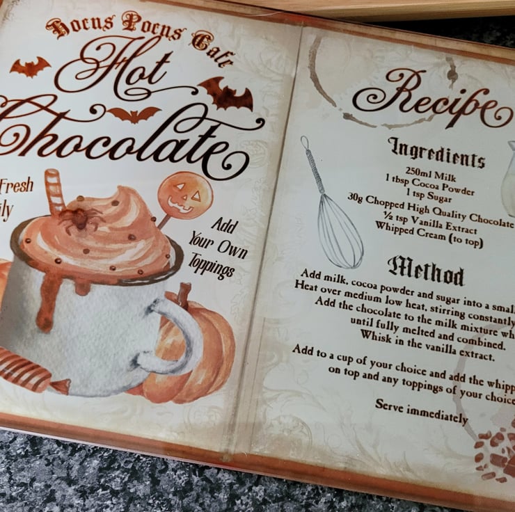 With a vintage Hocus Pocus cafe,Hot chocolate recipe design