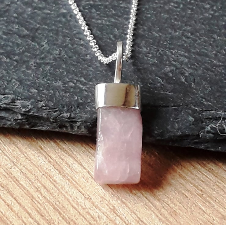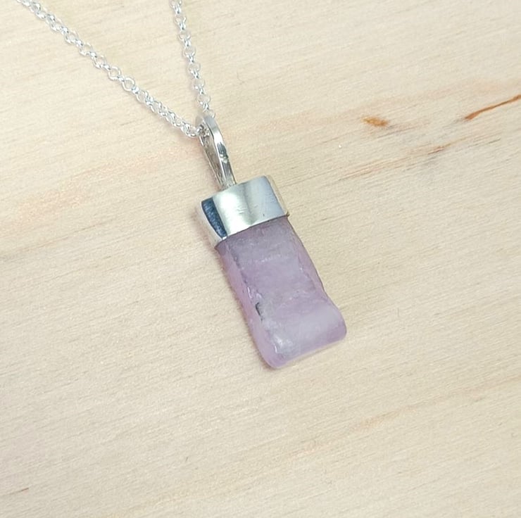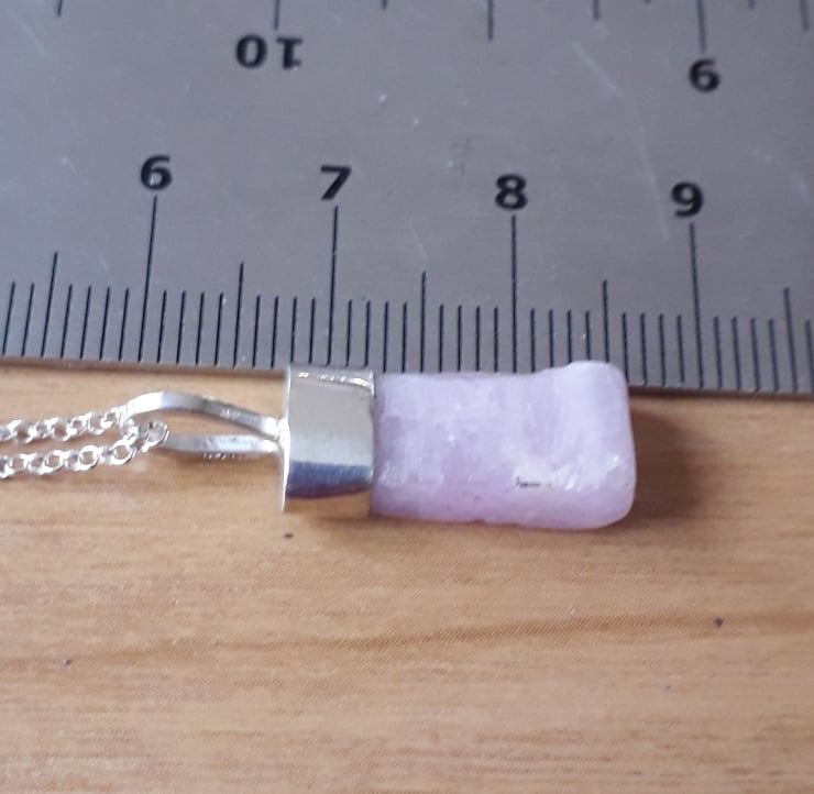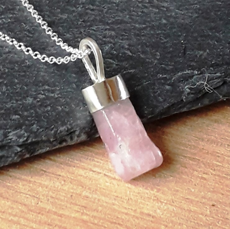 A beautiful natural pink to lilac Kunzite gemstone capped with handmade solid sterling silver and made into a pendant.